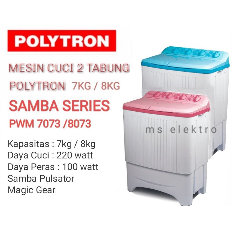 Mesin Cuci Polytron 2 tabung 7kg 8kg samba series pwm 7073 8073