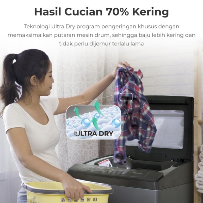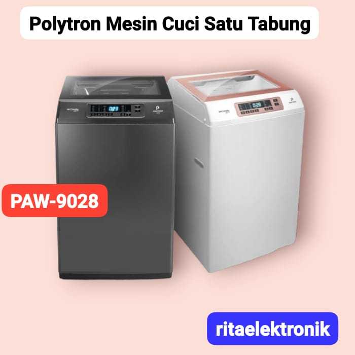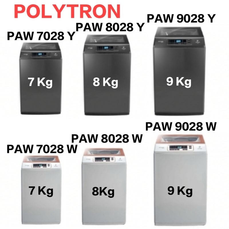 Mesin Cuci Satu Tabung POLYTRON Pintu Atas 7/8/9KG PAW 7028/80279028 Hitam Dan Putih