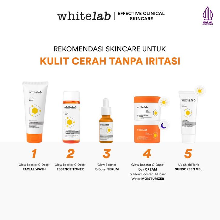 Whitelab 5 pcs Glow Booster C-Dose+ Brightening Paket Skincare - Facial Wash, Toner, Serum, with Day Cream & Moisturizer