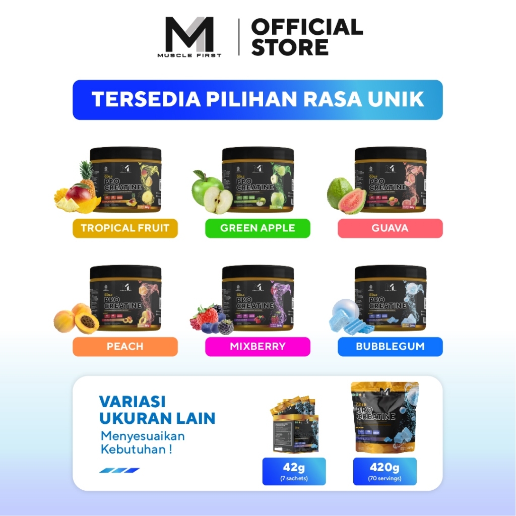 Muscle First Pro Gold Creatine 360gr 60 serving Pouch 420g Unflavored 125g Creatin Monohydrate Kreatin Suplemen Gym Fitn