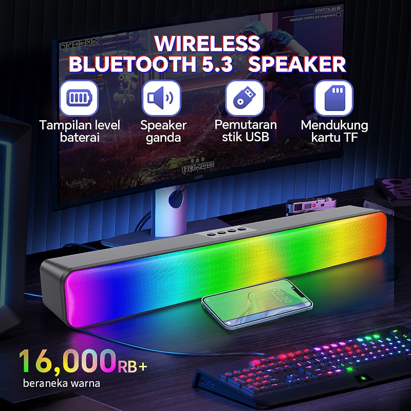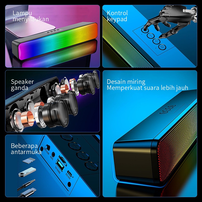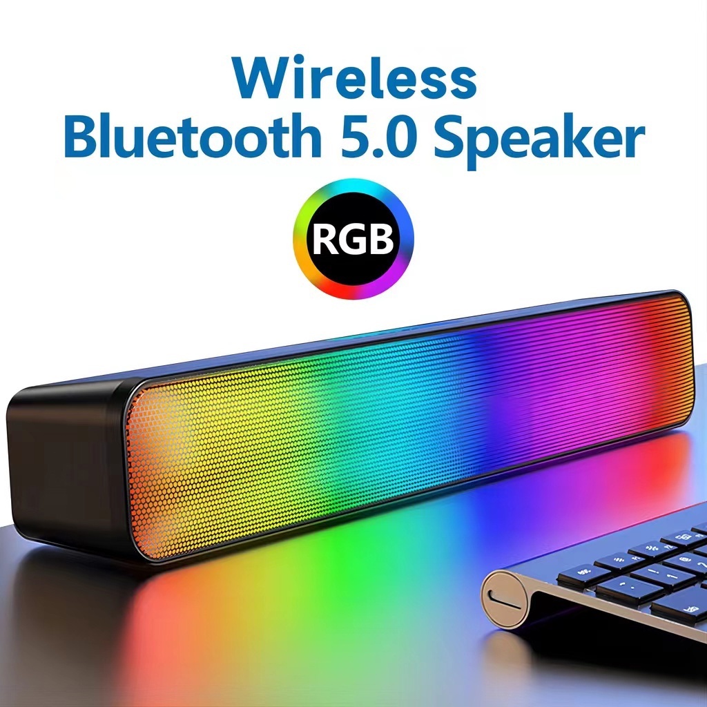 Speaker Bluetooth Soundbar RGB 5 Colors LED Light Computer TV Phone TF Multifunction 5.0 Bluetooth Speaker