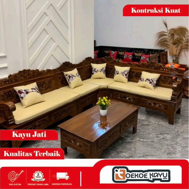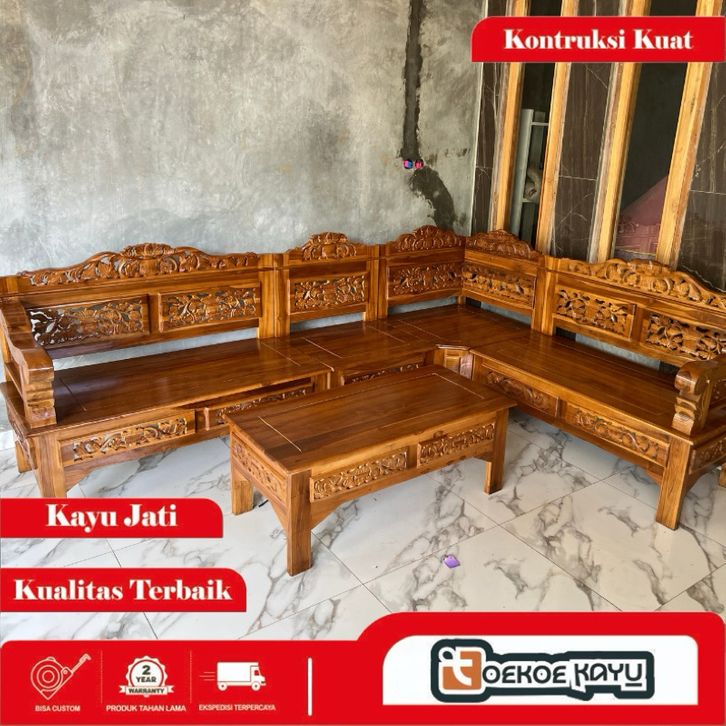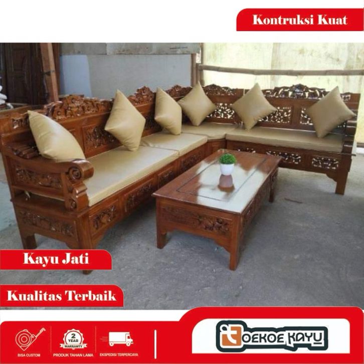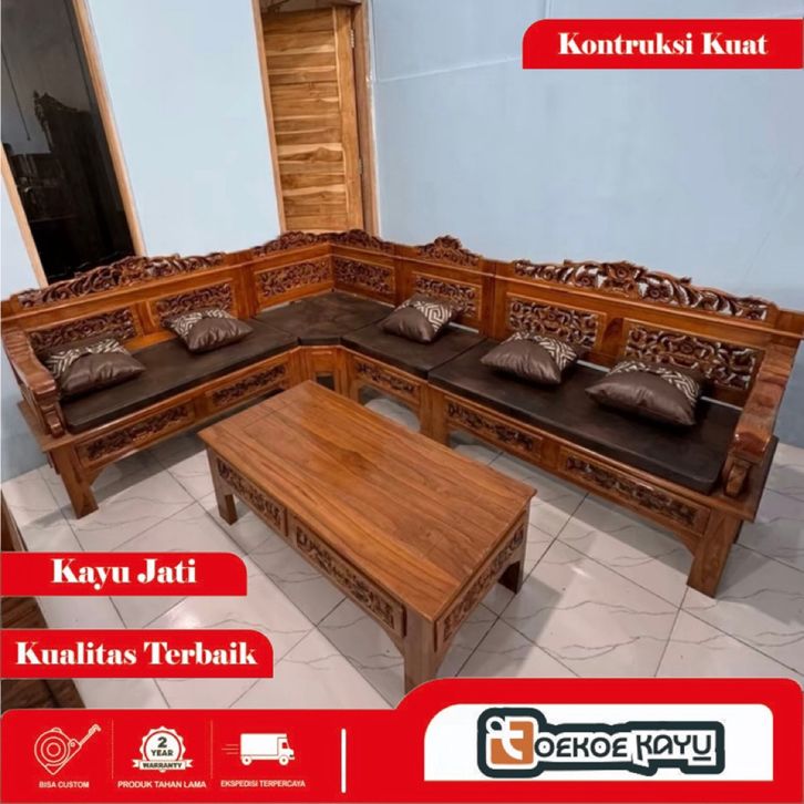 kursi ruang tamu kayu jati Kursi Tamu Sudut Bagong Kayu Jati Ukir kursi kayu Jepara Best Seller