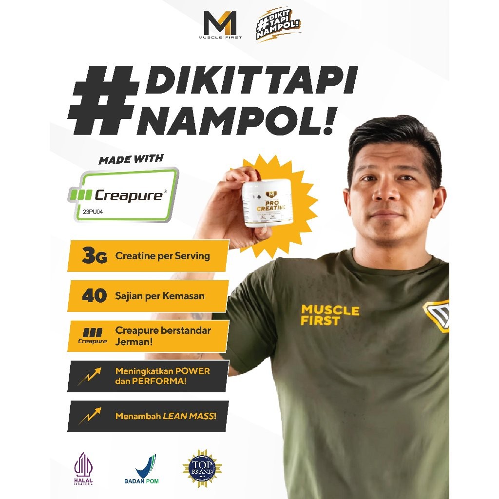 MUSCLE FIRST Pro Creatine Creapure 120gr - Menambah Massa Otot Suplemen Fitness