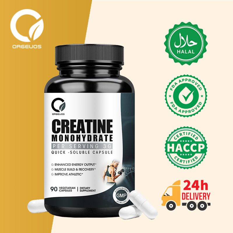 Orgeuos Creatine 3000mg Suplemen 90Kapsul Meredakan Kelelahan Otot & Mengembalikan Kebugaran Fisik