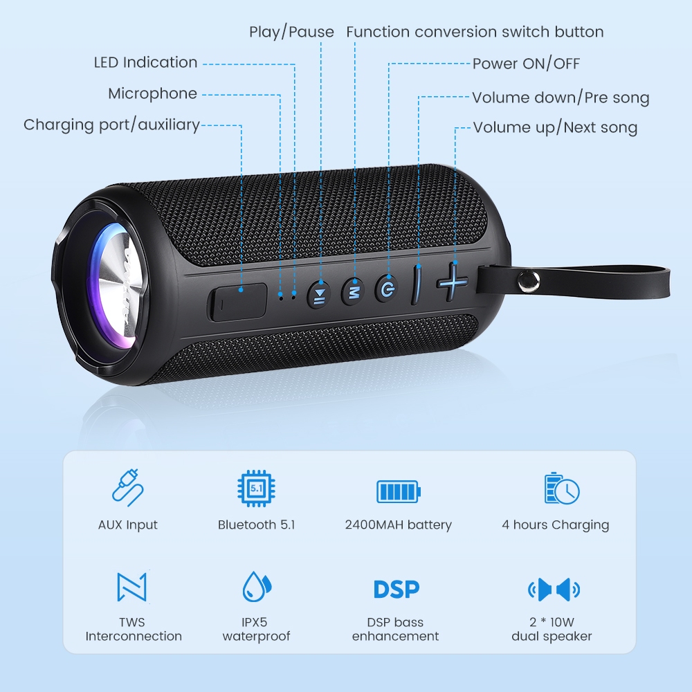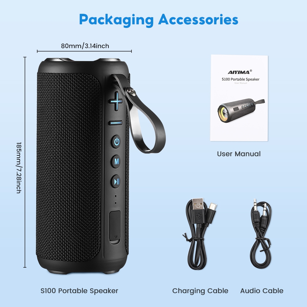 AIYIMA Powerful Bluetooth Speaker Bass Wireless Led Light Outdoor Speakers Subwoofer Waterproof Sound Box Support TF/TWS