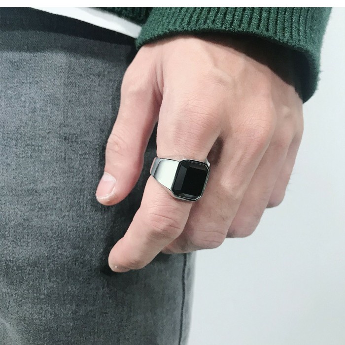 [Star] cincin BLACK ONYX akik batu casual titanium pria wanita DESTRO KEREN Premium EKSLUSIF SQUARE KOTAK