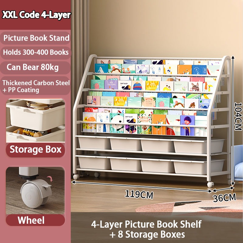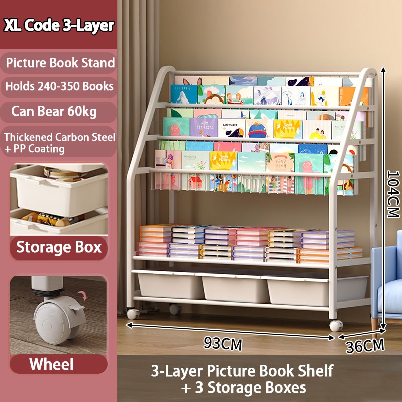 Rak Buku Susun Serbaguna Tempat Rak Buku Anak Rak Portable Roda Rak Mainan Rak Roda Toy Storage
