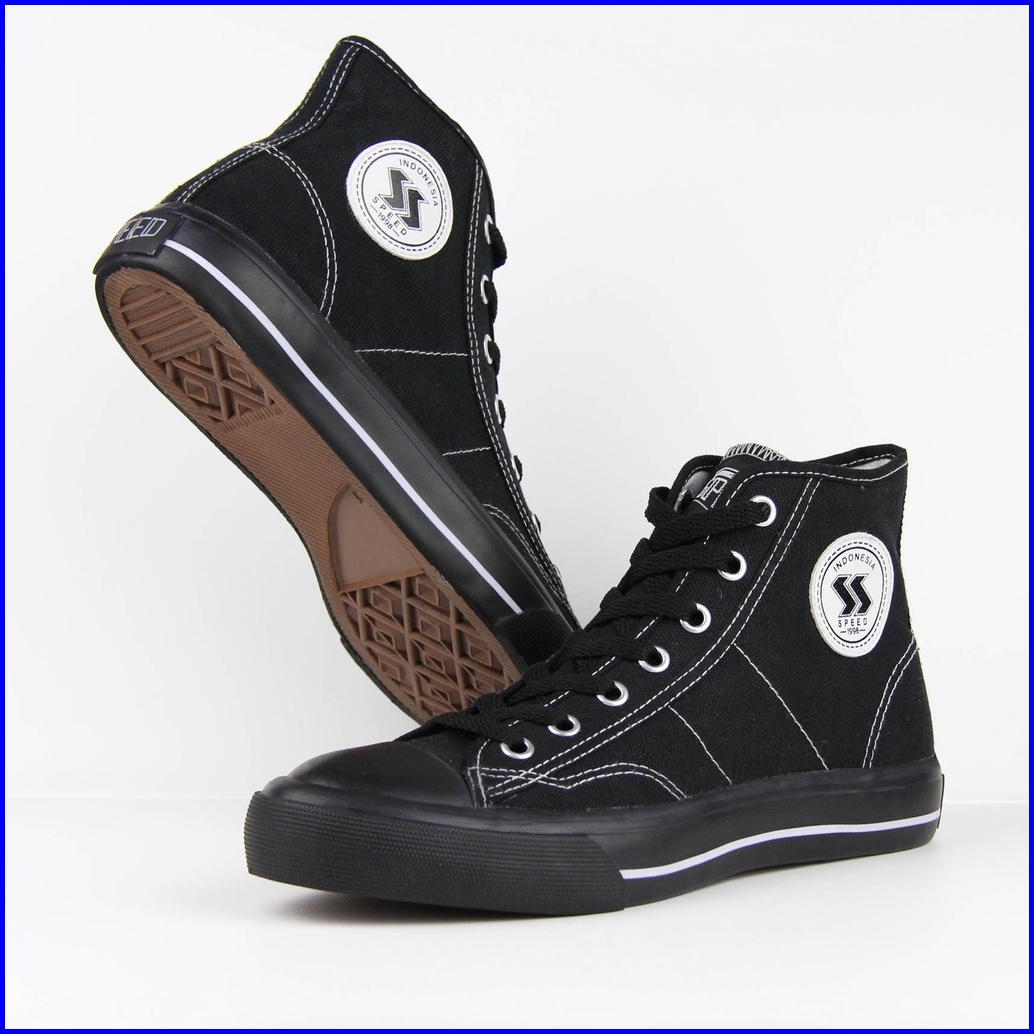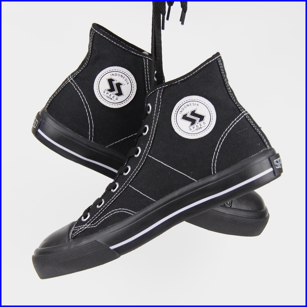 Speed - Basic Hi Hitam - Sepatu Sneakers Casual Pria Wanita 37 43