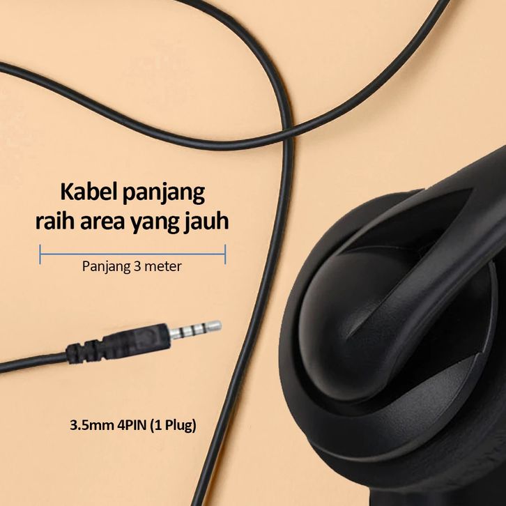 Headphone Bonkyo Headphone stereo dengan mikrofon dan single jack 3.5mm Cocok untuk pembelajaran di kantor