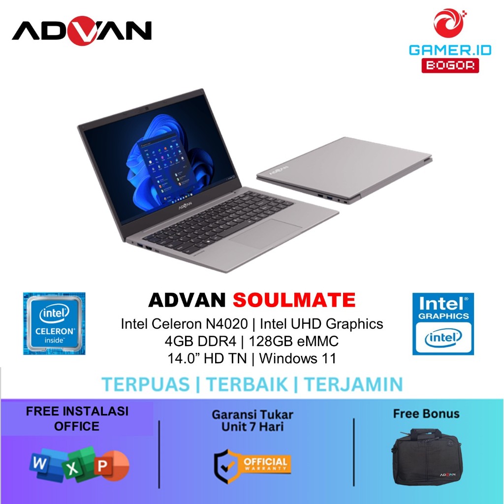 Advan Soulmate Intel Celeron N4020 4gb 128gb Windows 11 14.0 Hd Tn Grey
