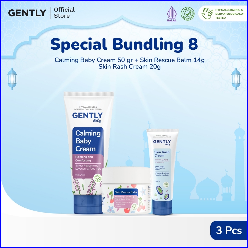 Gently Baby Special Bundling 8 Paket Calming Baby Cream 50 G Krim Bayi Nyaman Untuk Si Kecil Skin Rescue Balm 14 G Balm