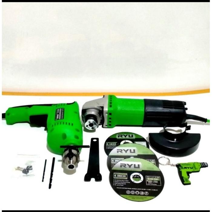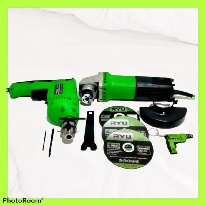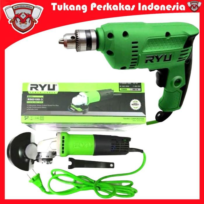 PAKET TEKIRO RYU MESIN BOR LISTRIK 10MM DAN GERINDA TANGAN RSG 100-3 SLEPAN RYU