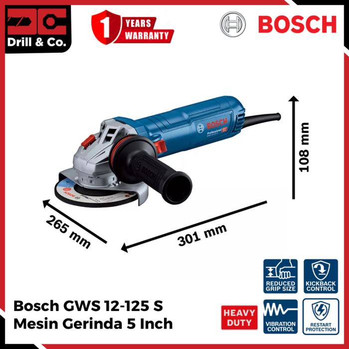 Bosch GWS 12-125 S Mesin Gerinda Tangan 5" / Gerinda Tangan 5 Inch