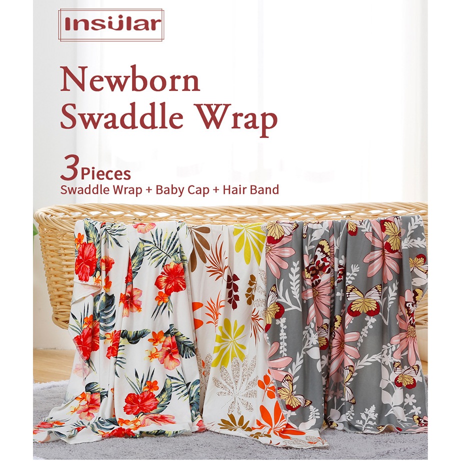 3 pcs /set Bungkus Bayi Baru Lahir + Topi Bayi + Ikat Rambut / Set Handuk Bedong Bayi