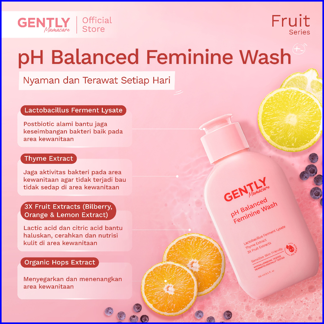 Gently Mamacare Ph Balanced Feminine Wash Fruit Series With 3x Fruit Extract - Pembersih Kewanitaan Untuk Mengurangi Dar