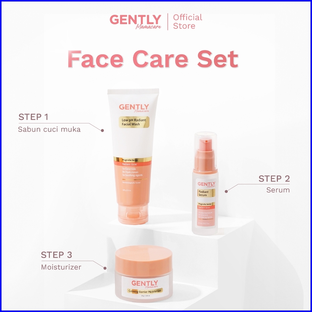 Gently Mamacare Face Care Set Facial Wash Radiant Face Serum Calming Barrier Moisturizer