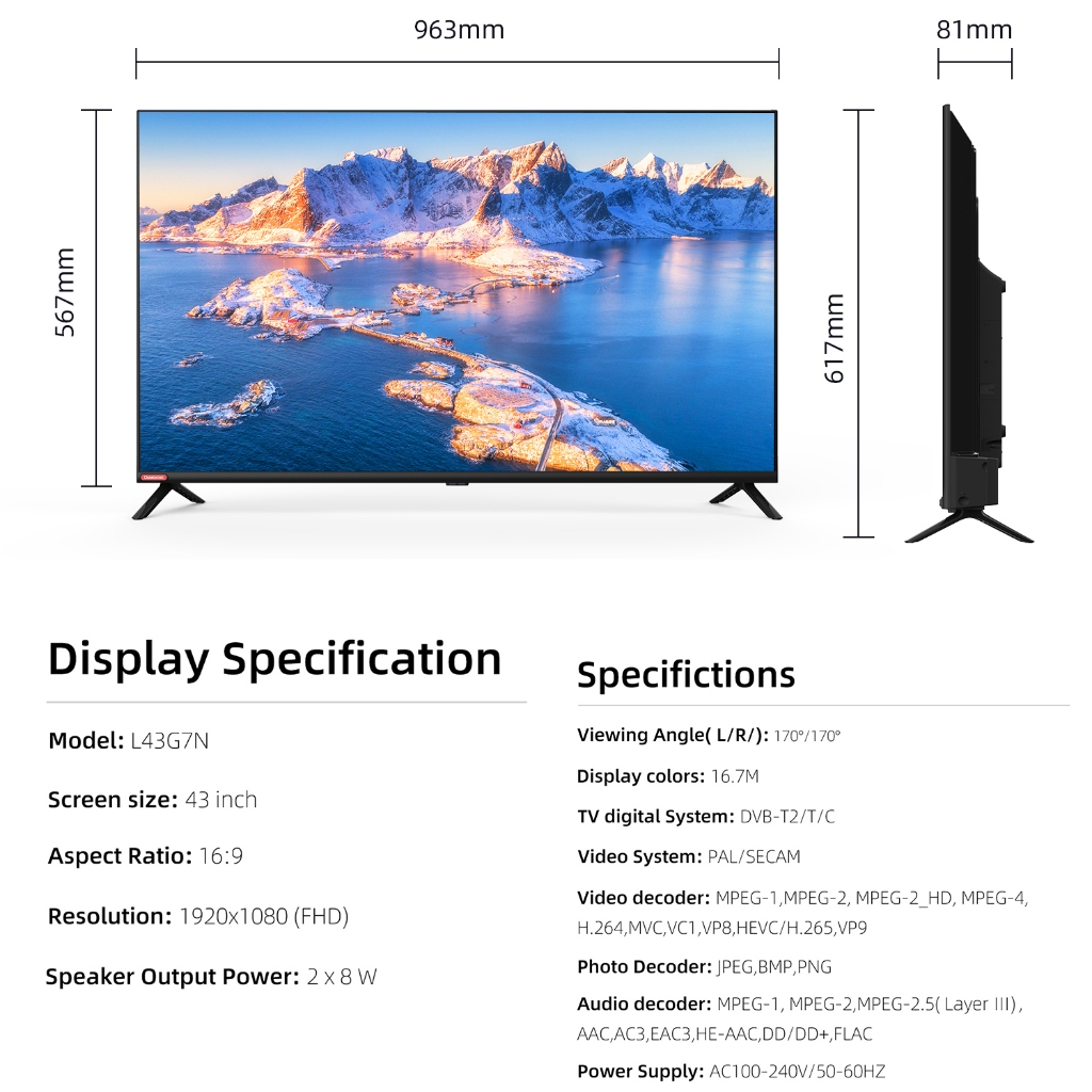 Changhong TV Digital 43 Inch Terbaru Android 11 Frameless Smart TV-L43G7N FREE BRACKET TV FHD LED Best Seller