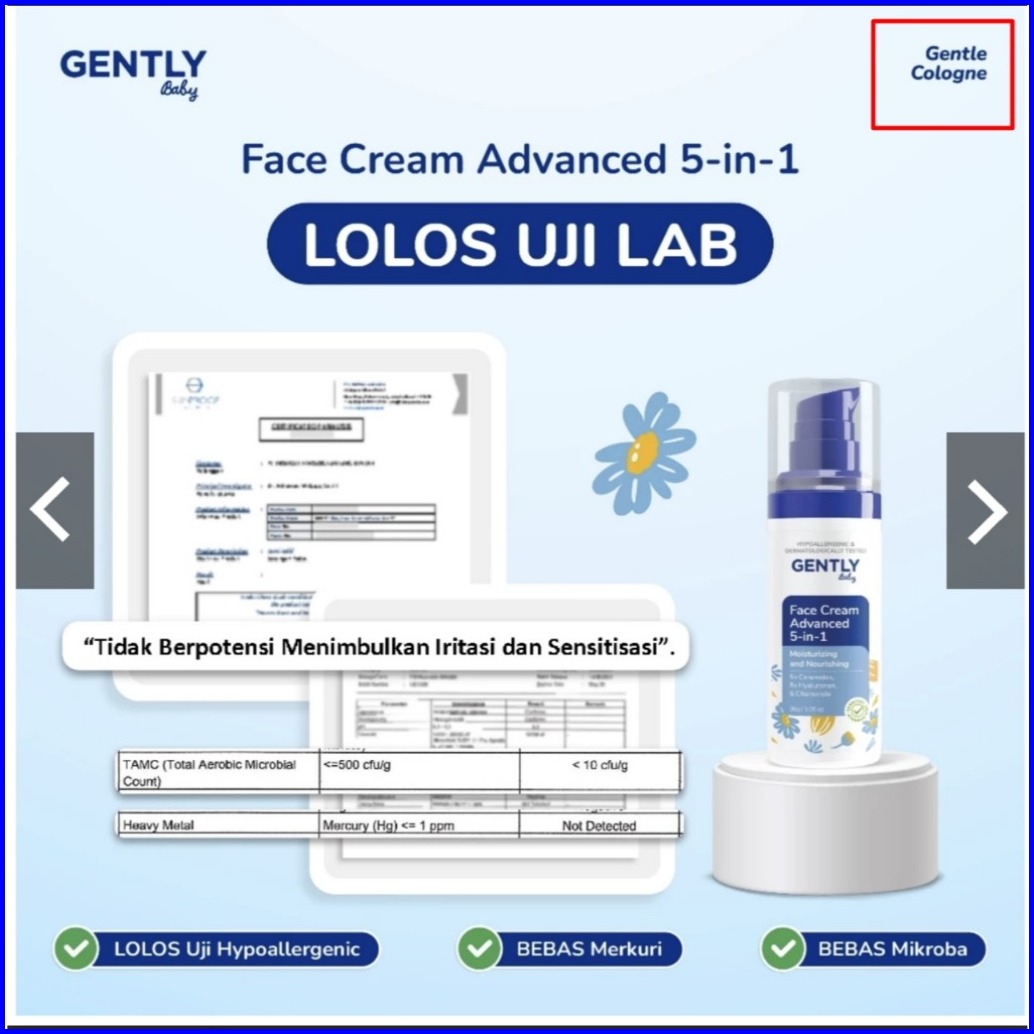 Gently Baby Face Cream Advanced 5-in-1 Dengan 5x Ceramide Dan 8x Hyaluronan