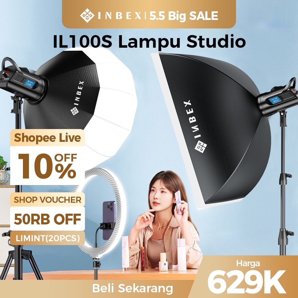 INBEX IL-100S Lampu Studio Softbox Lighting Kontent Live streaming 100W Foto Photography 3200k-5800K+2.8M Tripod