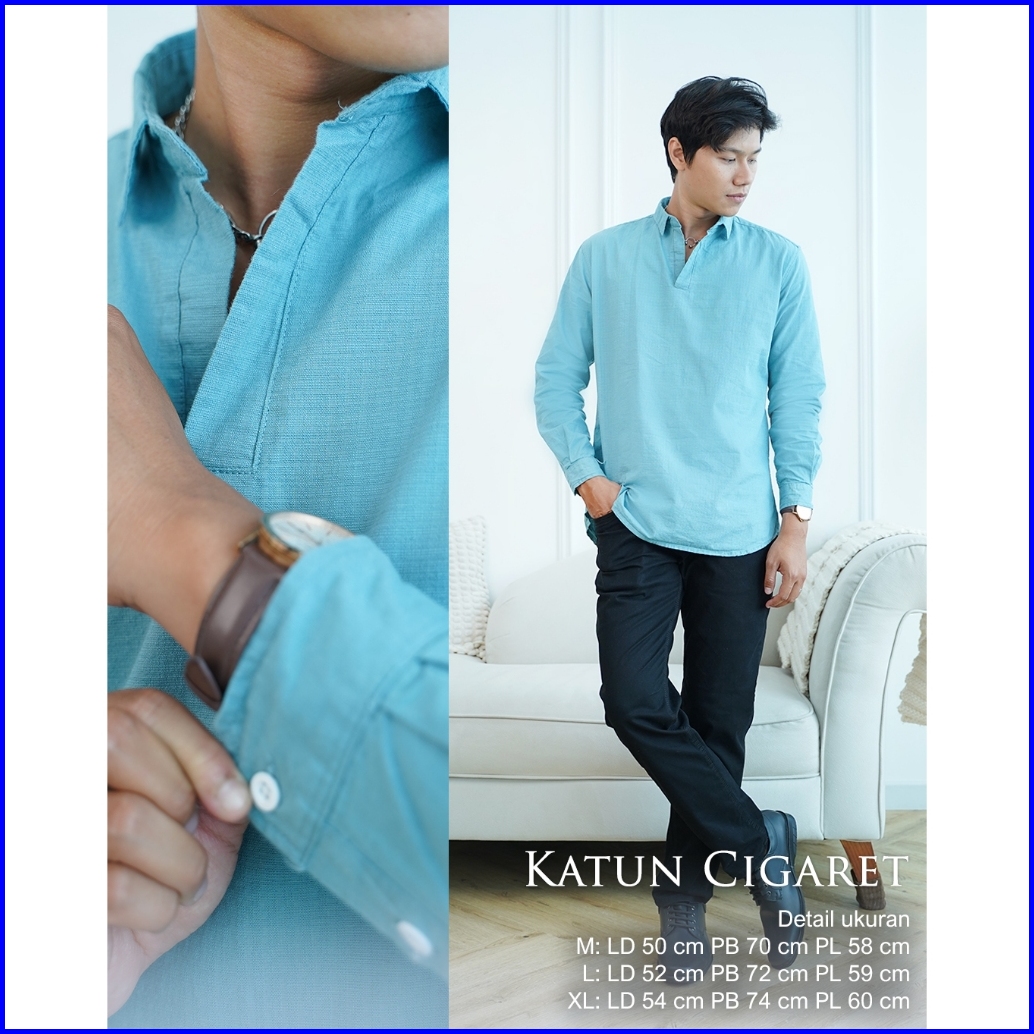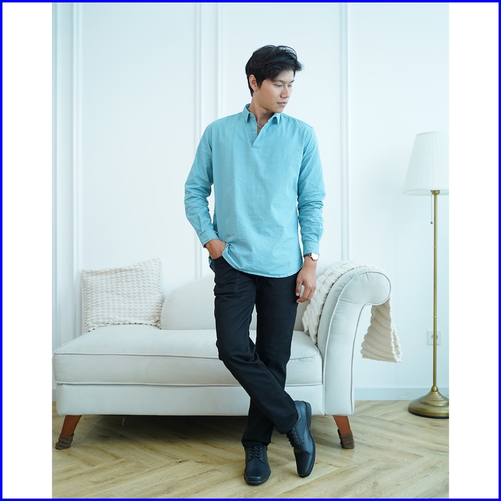 Kemeja Polos Pria Lengan Panjang Korean Style Kerah V Neck Tosca