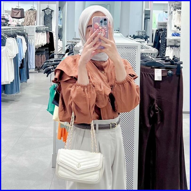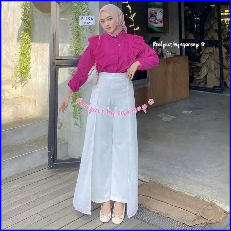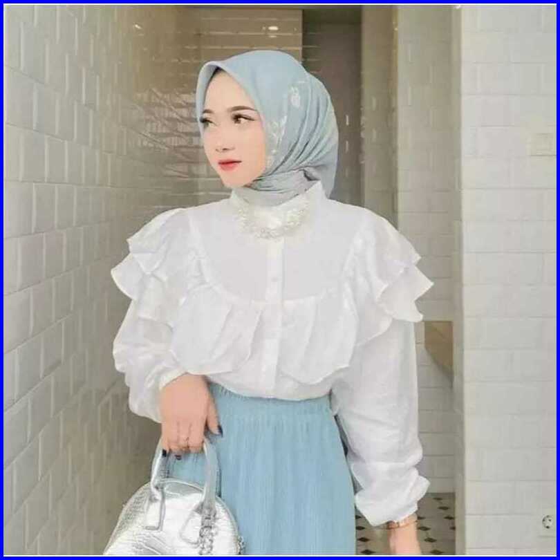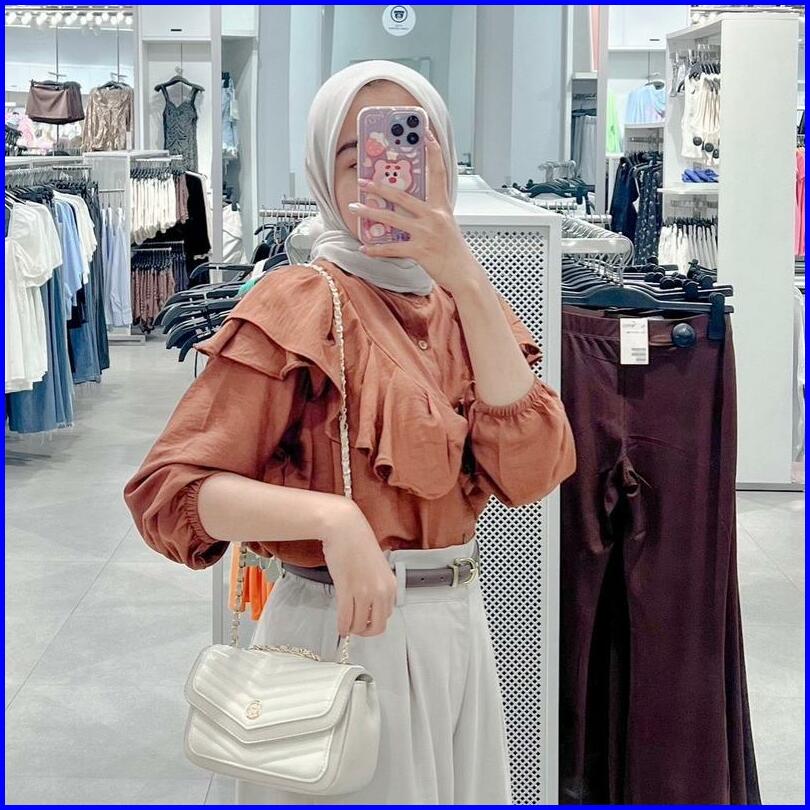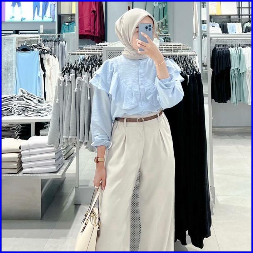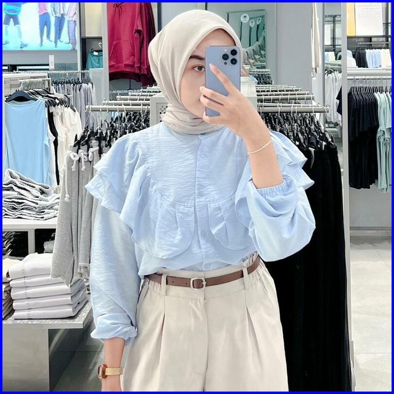Yure Blouse Ruffle Blouse Ruffle Polo Linen Rafella - Kemeja Wanita Polo Linen