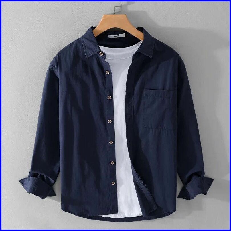Kemeja Polos Lengan Pajang Pria Bahan Katun Cigaret Warna Putih