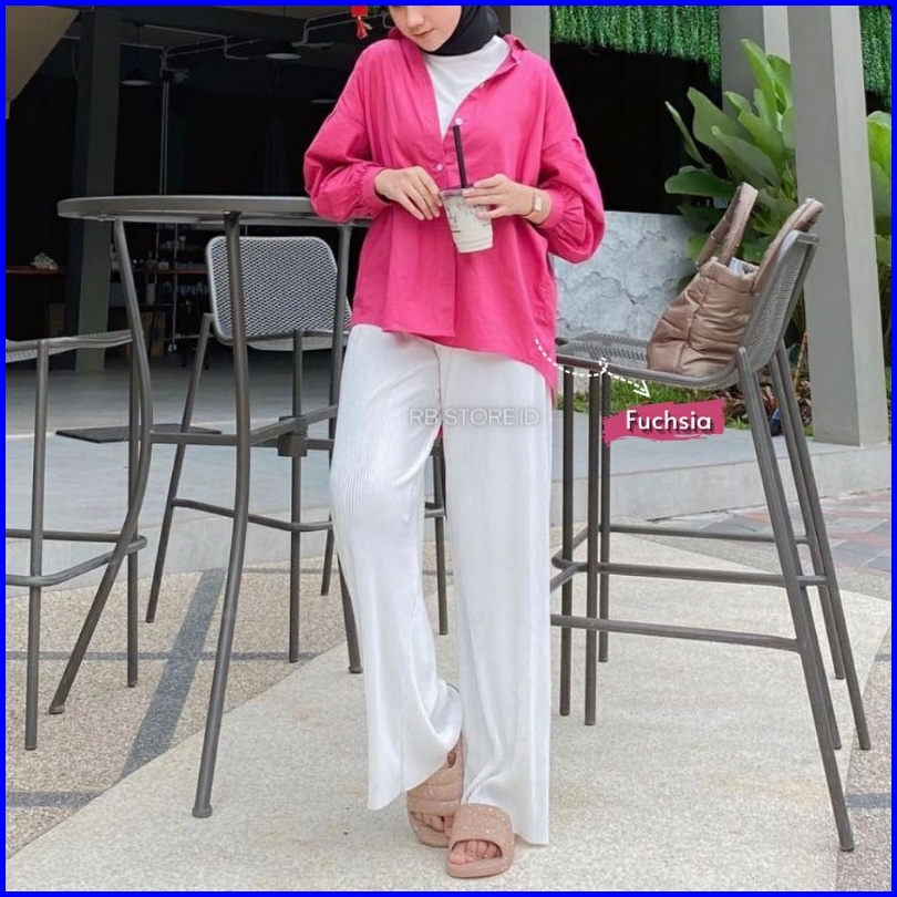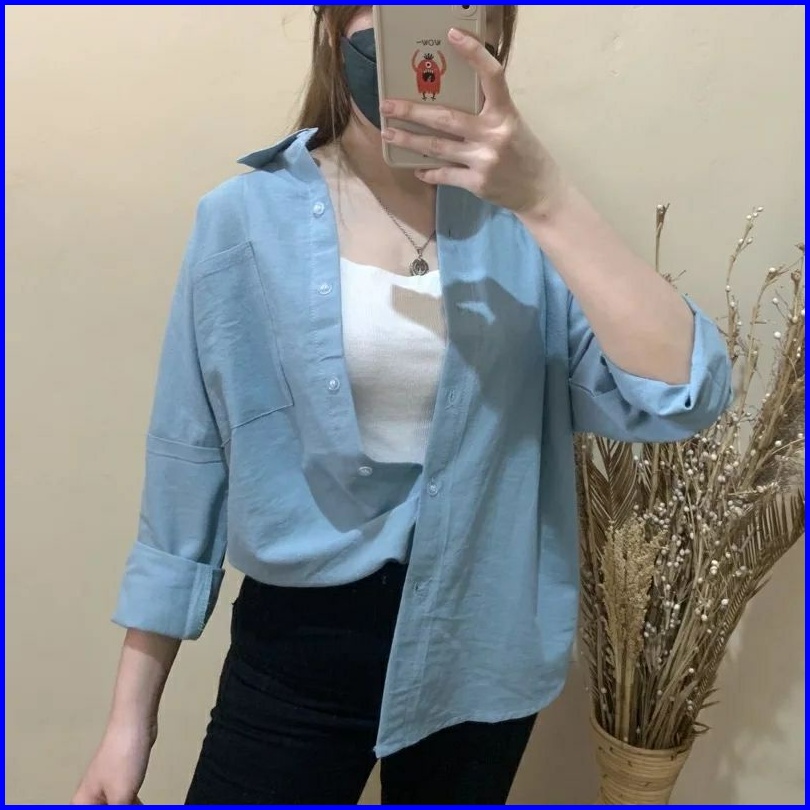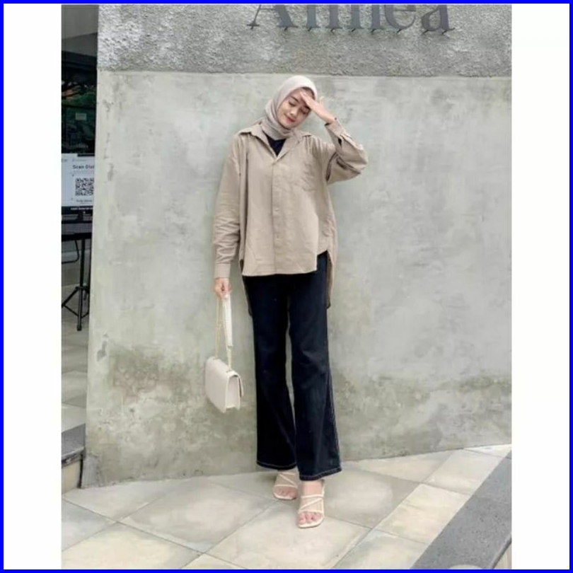 Kemeja Wanita Oversize Linen Olivia Shirt Linen Pocket Oversize