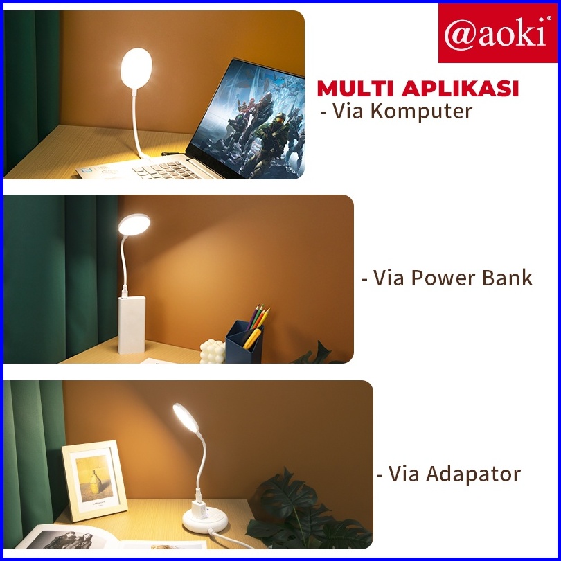 Aoki Usb Lampu Belajar Meja Night Light Lampu Samping Tempat Tidur Kamar Tidur Lampu Tidur Pelindung Mata Hemat Energi L
