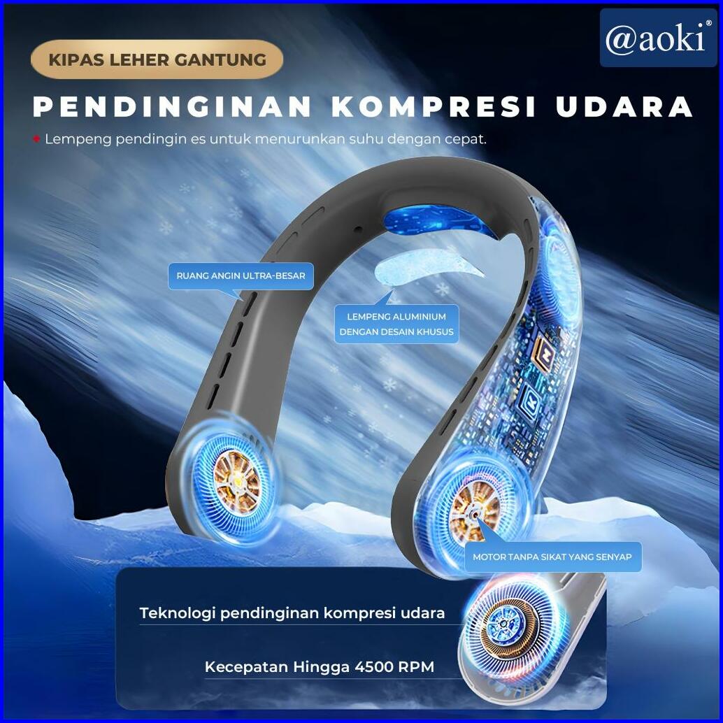 Aoki Kipas Leher Tanpa Baling-baling Neck Fan Ultra Chill Digital Pro 5 Kecepatan Usb Rechargeable Nyaman Senyap 1200mah