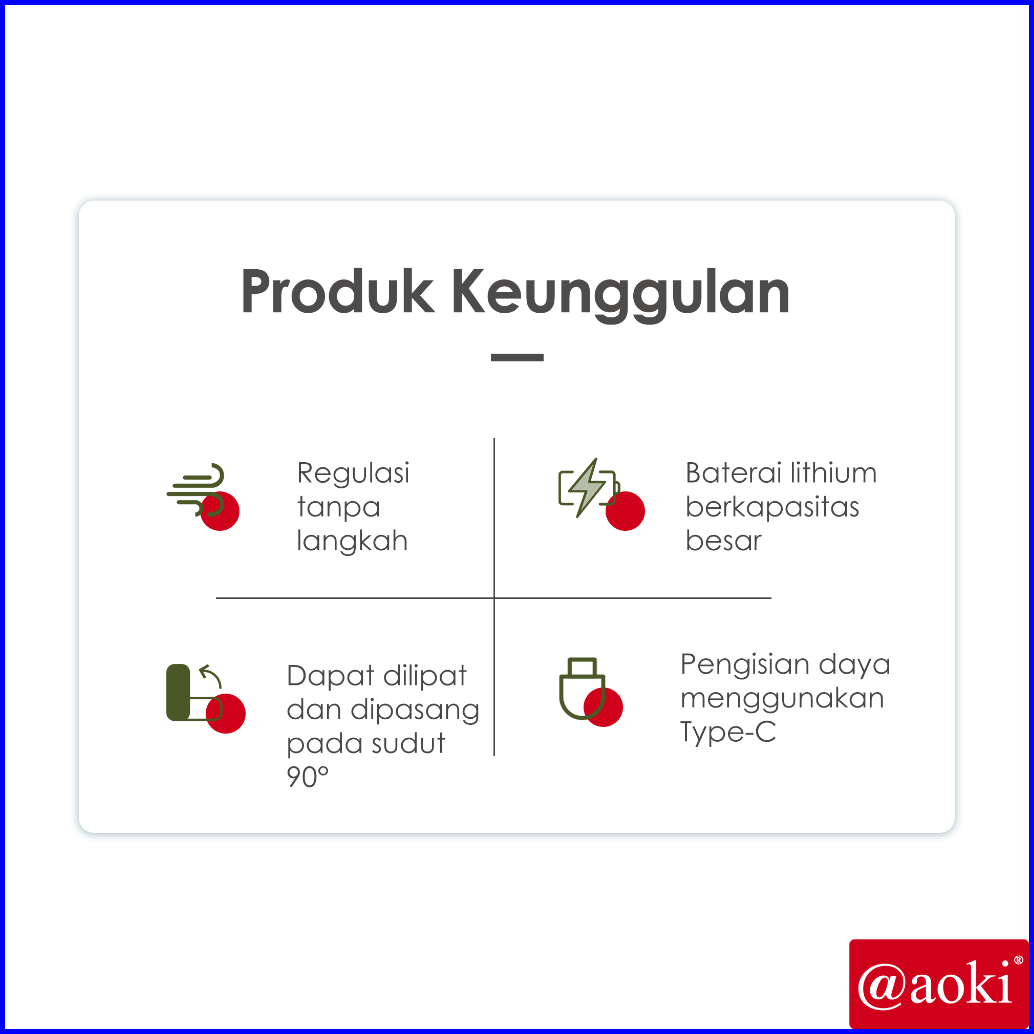 Aoki Anginportabel Pro - Kipas Lipat Baterai Lithium Kapasitas Besar 1200mah