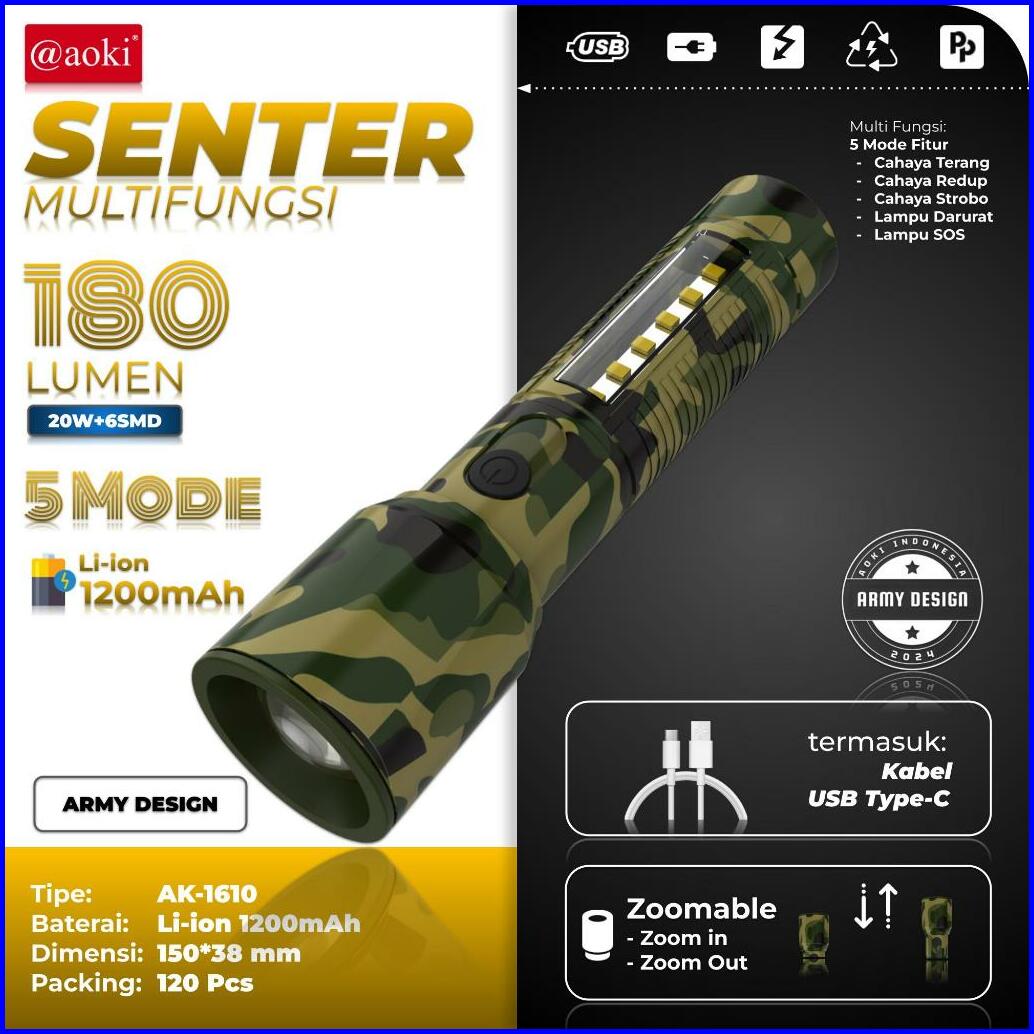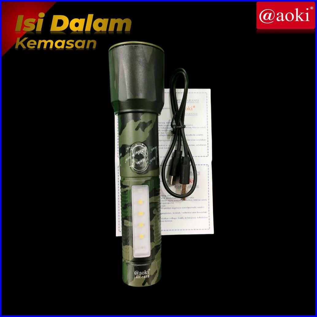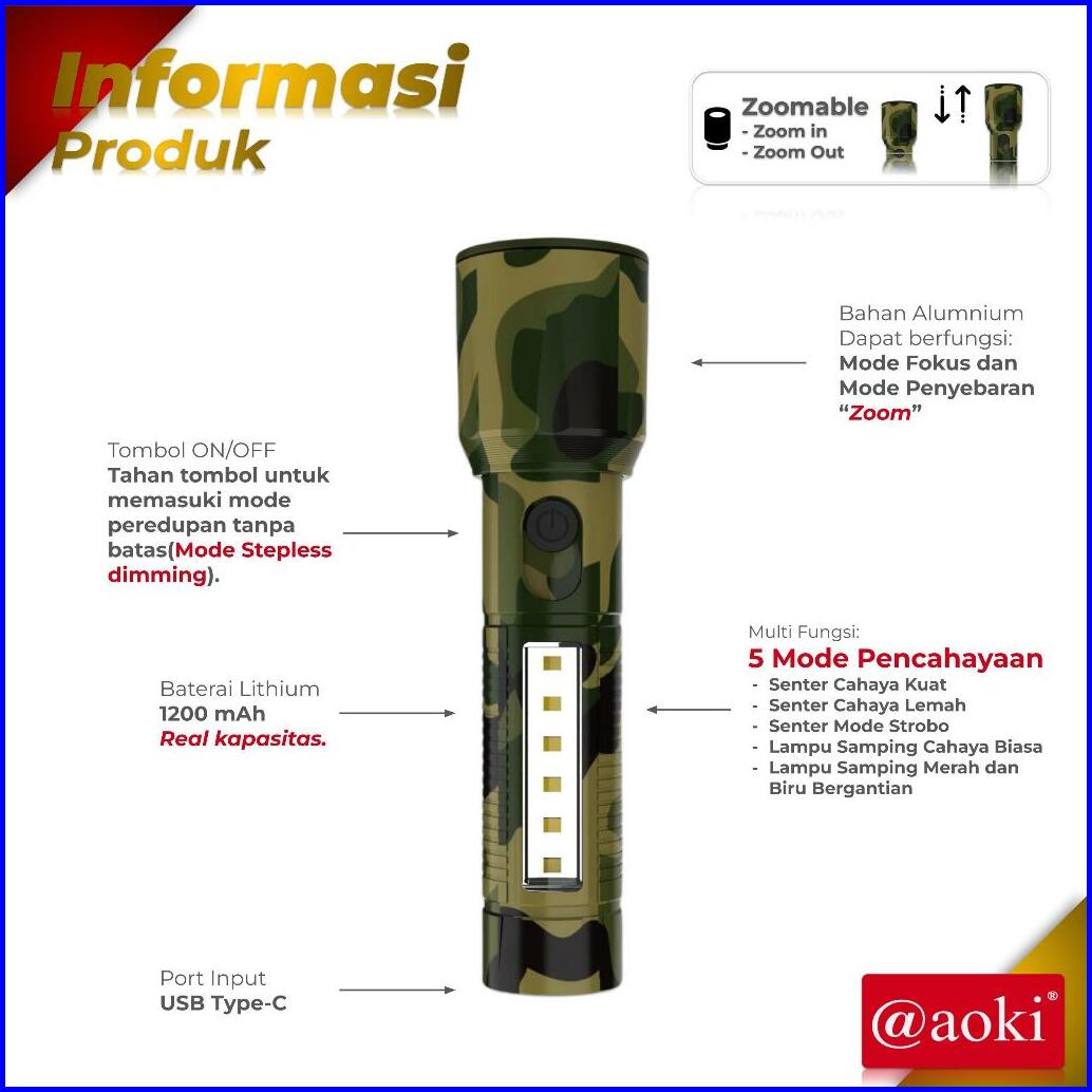 Aoki Senter Taktis Lapisan Kamuflase Multifungsi 5 Mode Led Dengan Zoom Usb Type-c