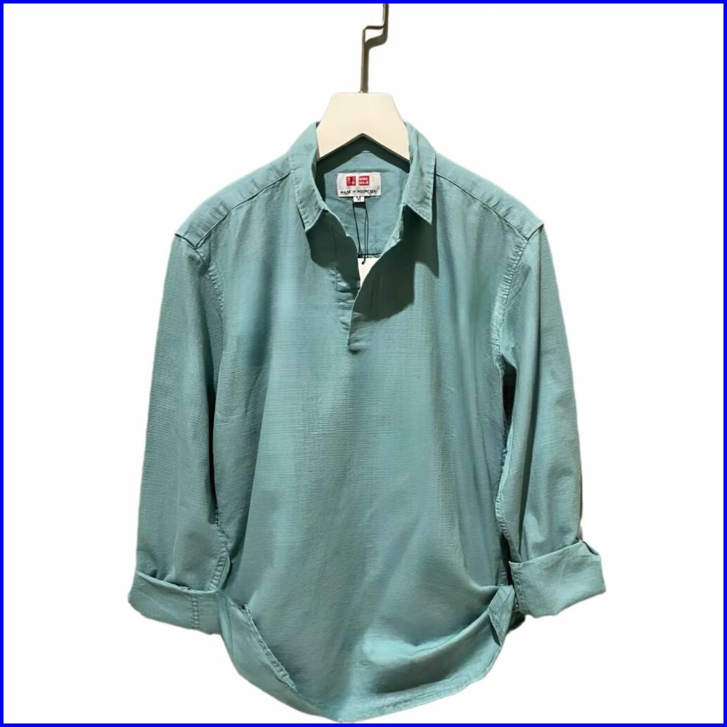 Kemeja Korean Style Pria Slimfit Minimalis Kemeja Polos Pria Krah Vneck