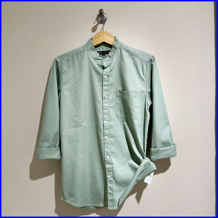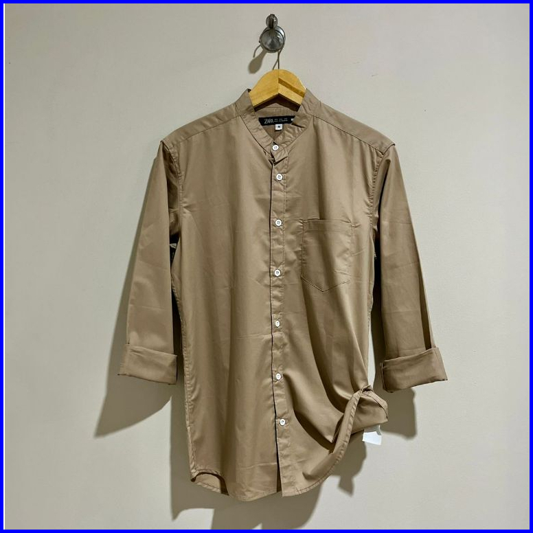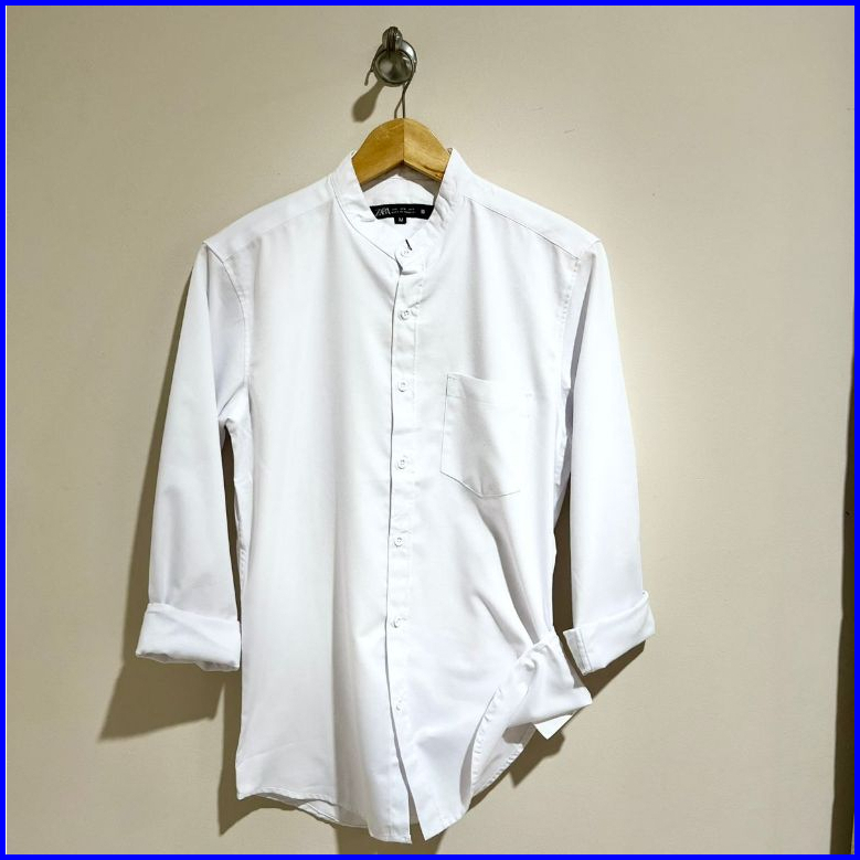 Kemeja Pria Slim Fit Lengan Panjang Model Kerah Mandarin Casual Elegan