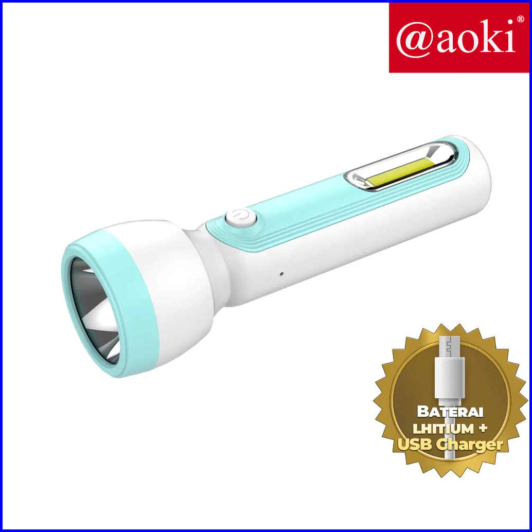 Aoki Senter Tangan Led 10w Cob Baterai Lhitium Usb Charging Terang Tahan Lama