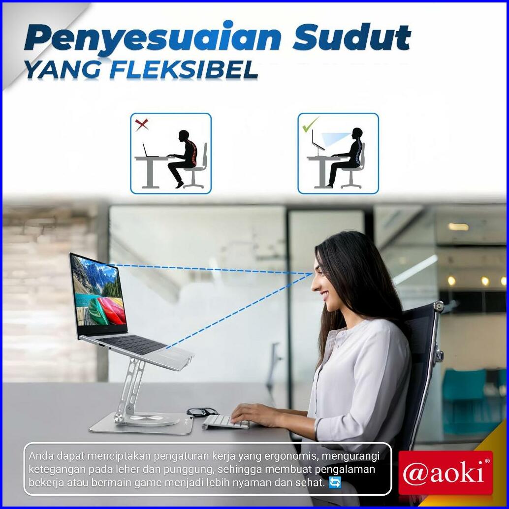 Aoki Laptop Stand Dengan 360 Rotasi Base Penstabil Komputer Ergonomis Untuk Meja Ketinggian Dan Sudut Dapat Disesuaikan