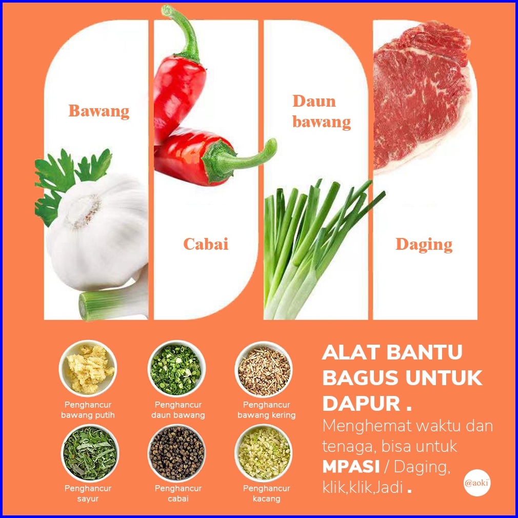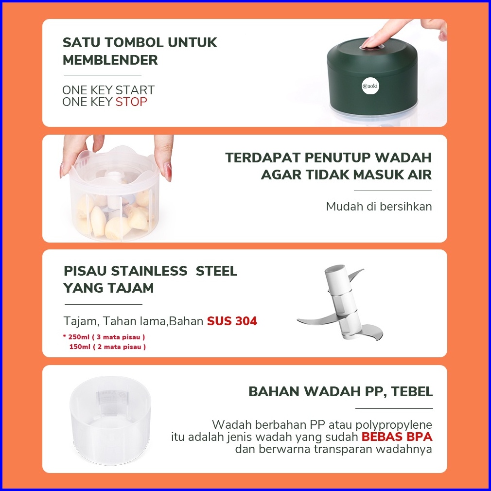 Exclusive - Aoki Blender Elektrik Wireless Serbaguna Baterai Lithium Merah Pisau Es Listrik Mesin Mini Chopper Portable