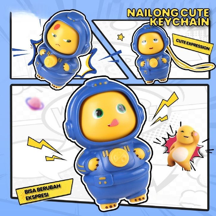 Gantungan Kunci Dino Kuning Nailong Keychain Karakter Kartun Lucu Bisa Berubah Ekspresi