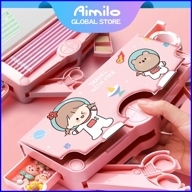 Aimilo Kotak Pensil Aesthetic Tempat Pensil Anak Perempuan Waterproof Kotak Pensil Anak Laki Laki Alat Tulis Sekolah