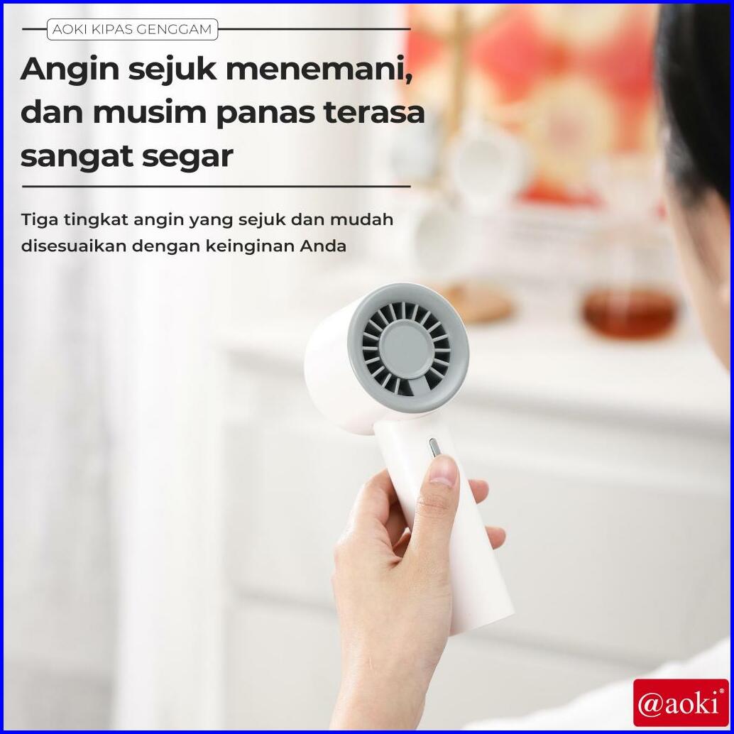 Aoki Kipas Mini Turbo Angin Kencang Hemat Daya Baterai Awet Portable 3 Kecepatan Usb Charging Baterai Tahan Lama