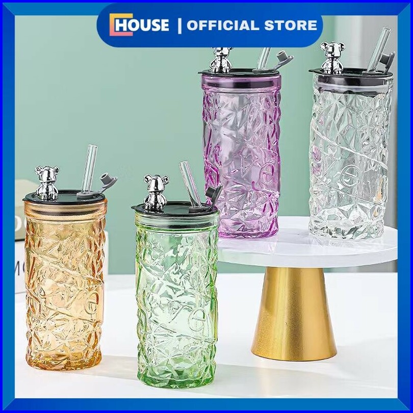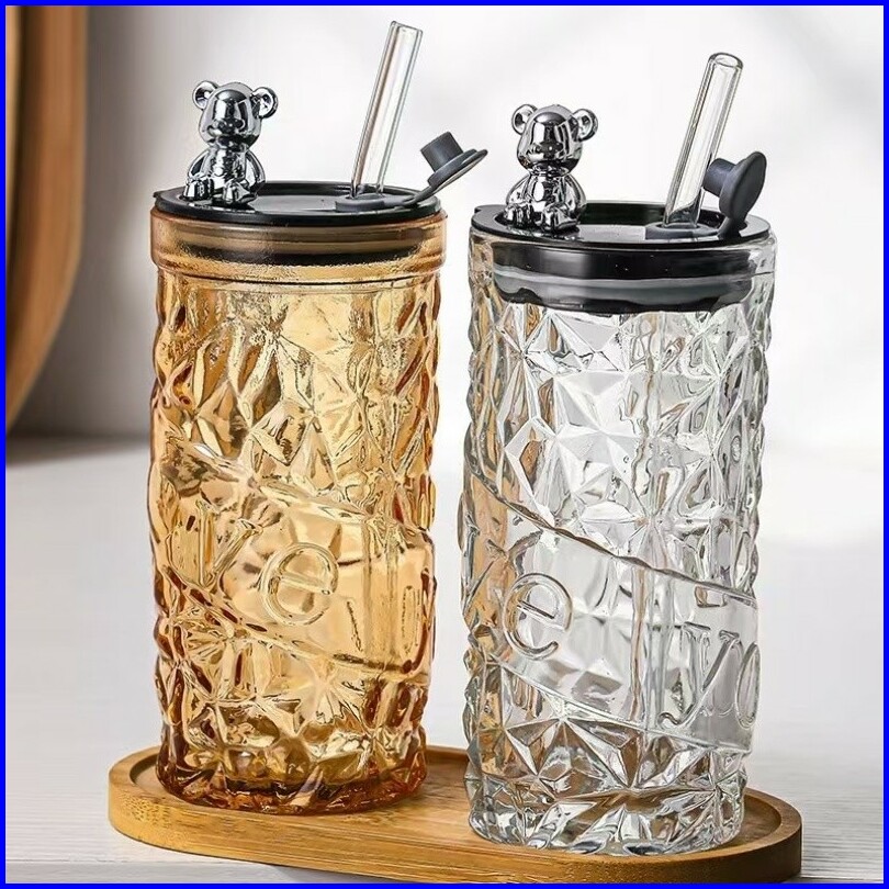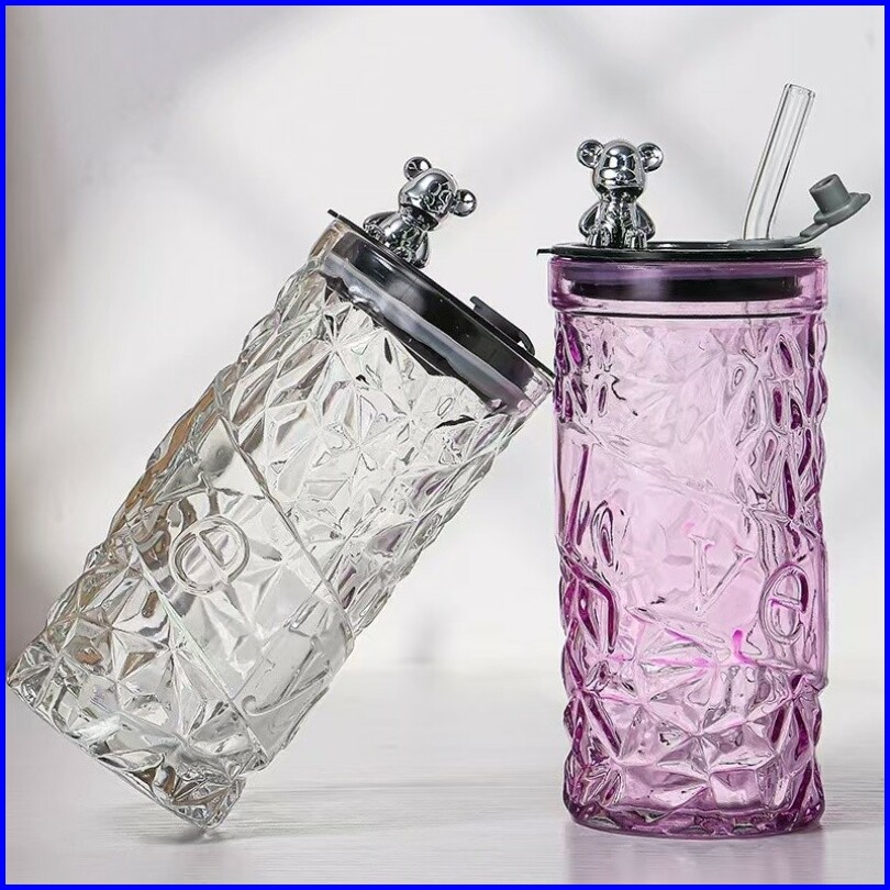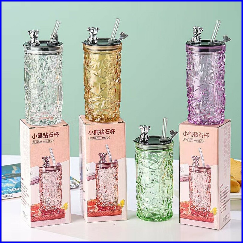 Bear Lid Glass Gelas Kaca Borosilicate Tinggi Cangkir Minuman Cangkir Kopi
