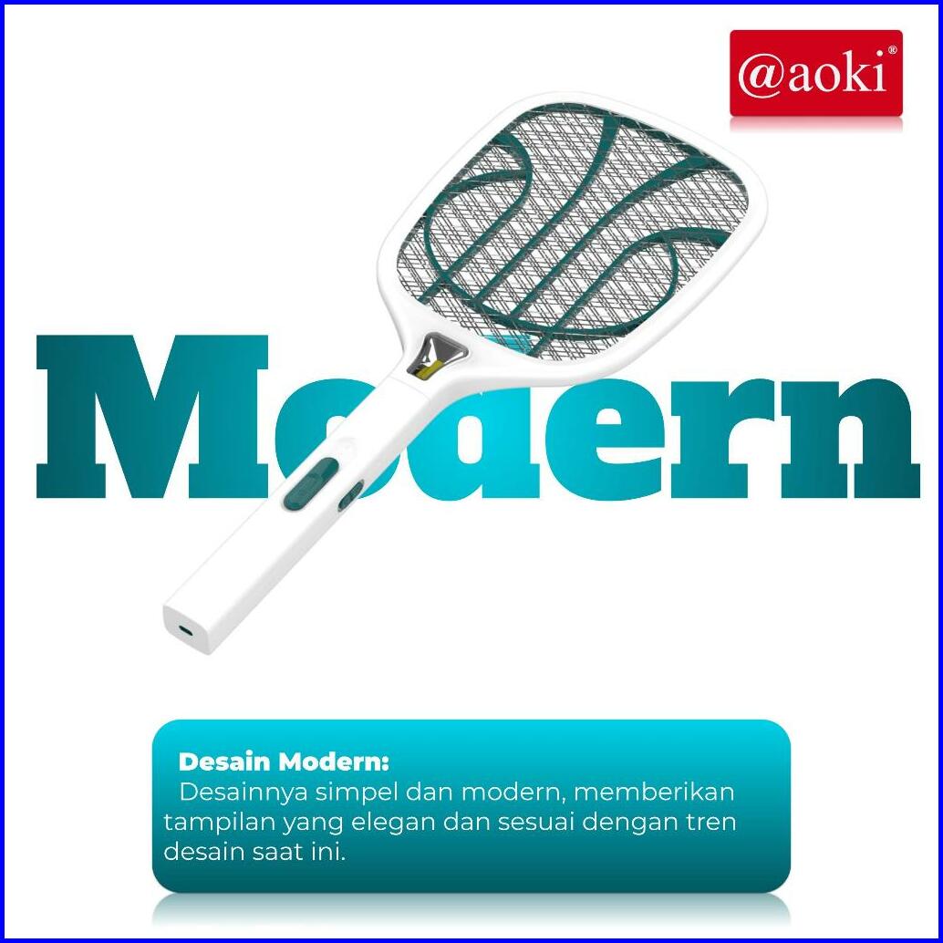 Aoki Raket Nyamuk Baterai Lithium Yang Dapat Diganti Usb Hi Power Dimensi Besar Desain Modern