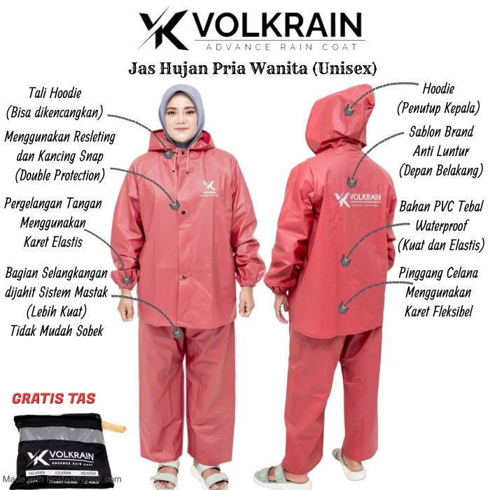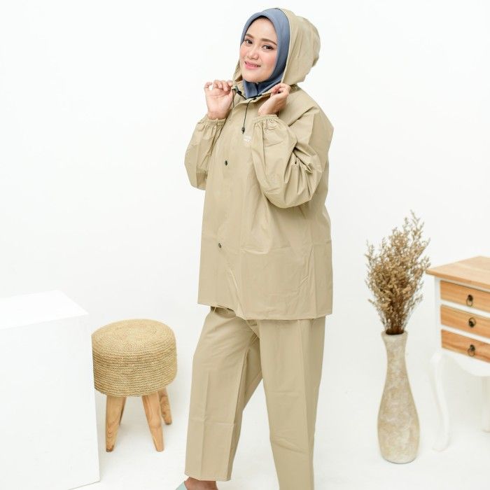 jas hujan GRATIS TAS Jas Hujan Premium Volkrain Original - Raincoat Waterproof - Cream XXL