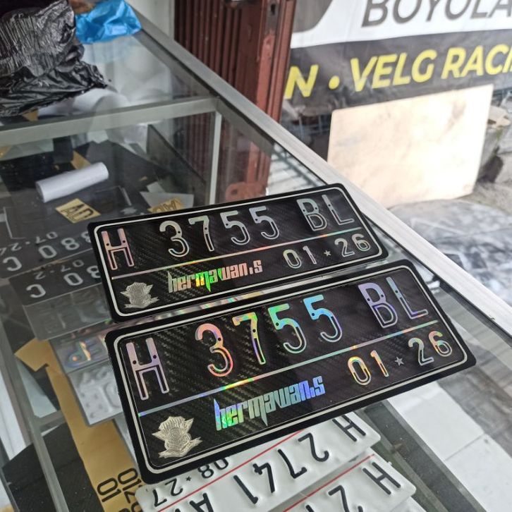 Plat nomor carbon holo9ram lapis mika/akrilik berkualitas keren