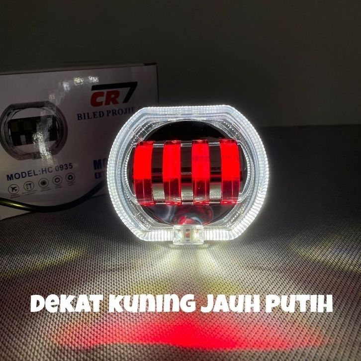Lampu Tembak Led Biled Projie CR7 Lampu Utama Biled Proji Plus Shroud Biled 4 lensa 8D High Low Putih Kuning