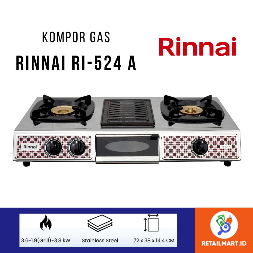 RINNAI : RI-524A KOMPOR 2 TUNGKU + GRILL PAN / PANGGANGAN SATE RI 524A ( 524 A )