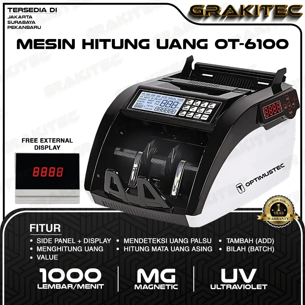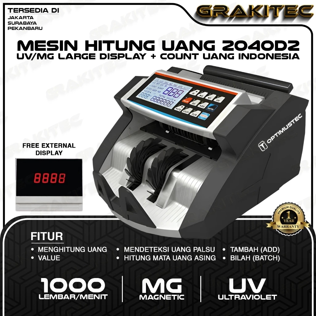 MESIN PENGHITUNG UANG ALAT HITUNG UANG COUNTER MESIN HITUNG UANG MEREK OPTIMUSTEC DILENGKAPI SINAR UV DAN MG(MAGNETIC) S