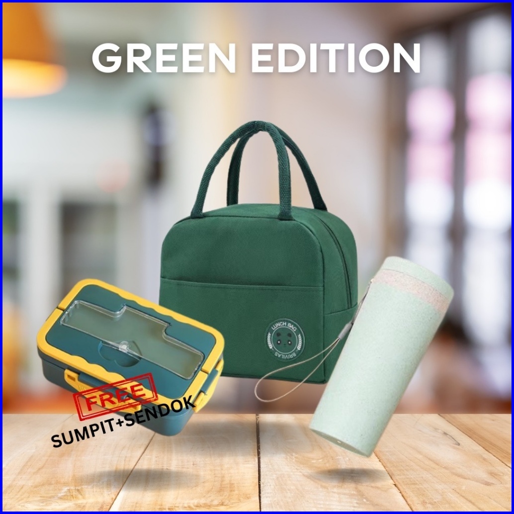 Combo Back To School 3 In 1 Kotak Makan Set Lunch Box Set Lunch Bag Set 3 Pcs