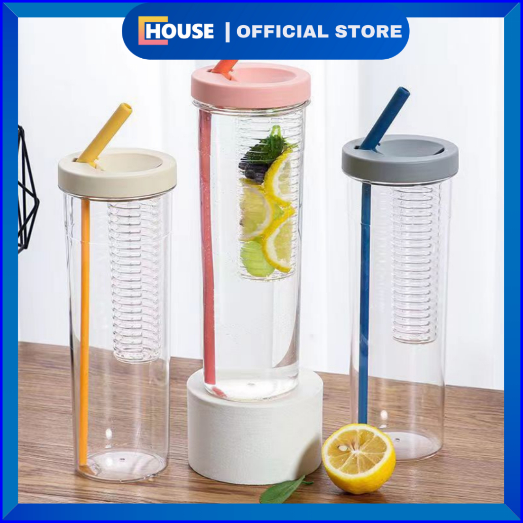 Botol Minum Transparan Infused Water Botol Minum Filter Botol Minum Sedotan Lipat Free Stiker 700ml