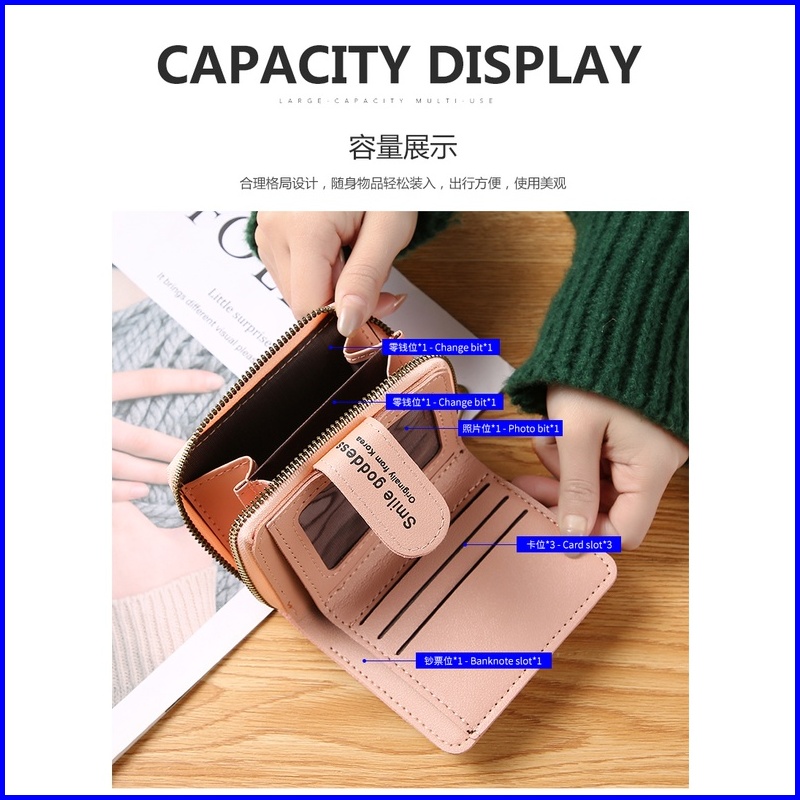 Smile Goddess Baru Wanita Dompet Pendek Ritsleting Tas Clutch Gaya Korea Fashion Pemegang Kartu Dompet 818