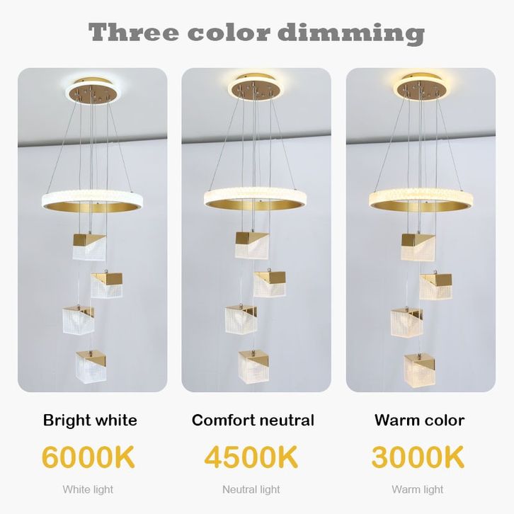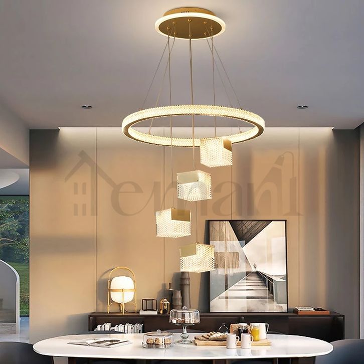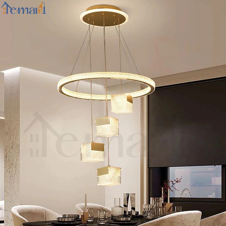 Lampu Gantung Ruang Tamu Lampu Hias Gantung Minimalis Lampu Gantung 3 Warna+4Head persegi Void Panjang Lampu Kristal